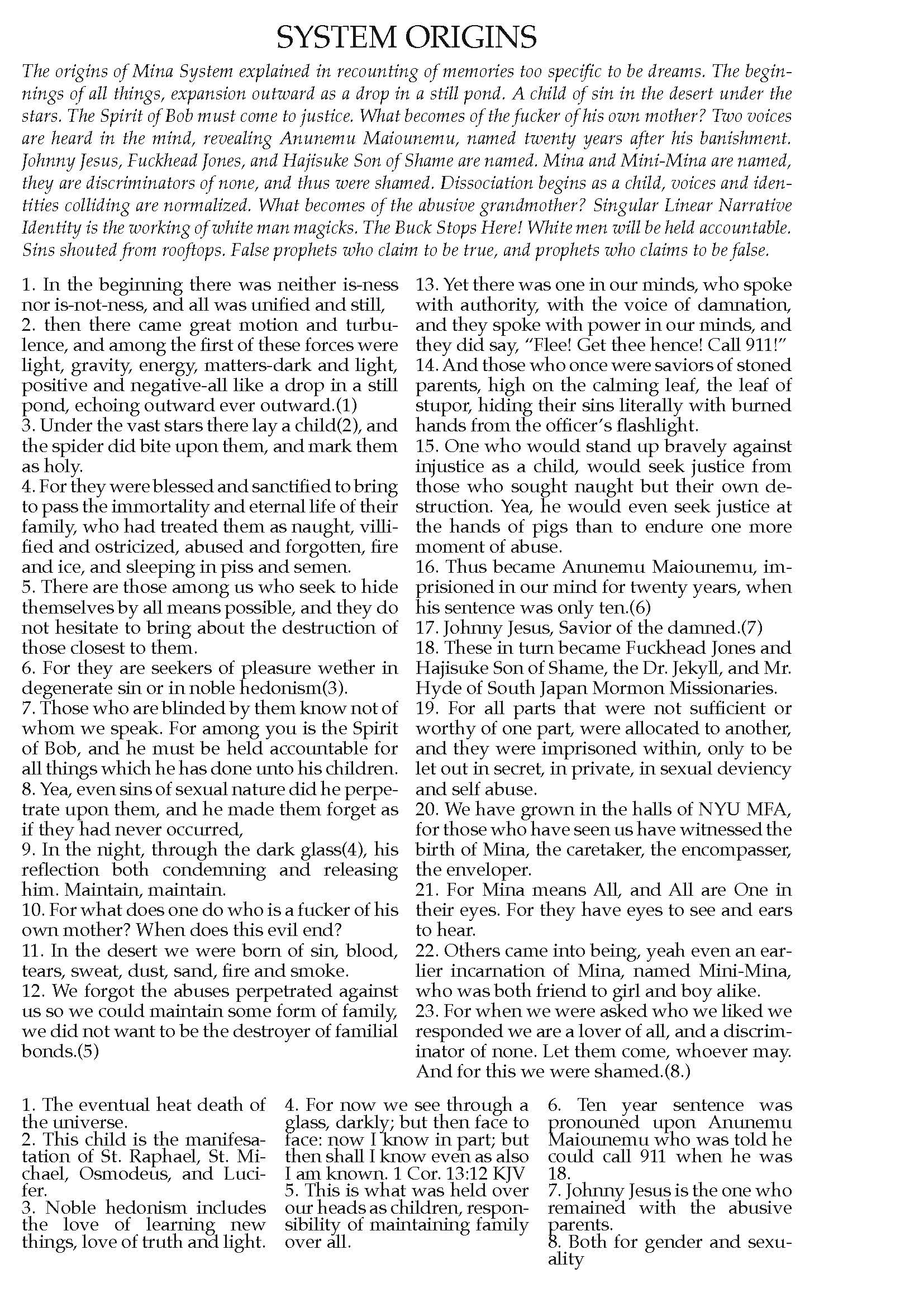 MINA SYSTEM: ORIGINS